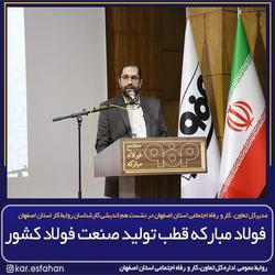 مدیرکل تعاون، کار و رفاه اجتماعی استان اصفهان با بیان اینکه صنعت فولاد 350 هزار نفر نیروی شاغل در کشور دارد افزود: فولاد مبارکه قطب تولید صنعت فولاد کشور است  وصنایعی مانند ذوب آهن و فولاد توانسته اند اقتصاد کشور را با توجه به شرایط موجود رونق ببخشند که برای حمایت از این صنایع، باید راه را برای حضور در بازارهای جهانی هموار نمود.