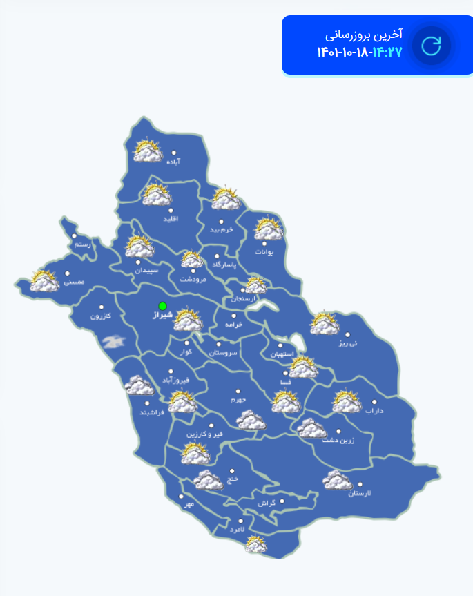 نقشه هواشناسی بعدازظهر 18 دی فارس