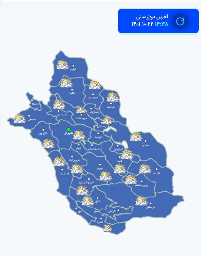 نقشه هواشناسی بعد از ظهر 22 دی فارس