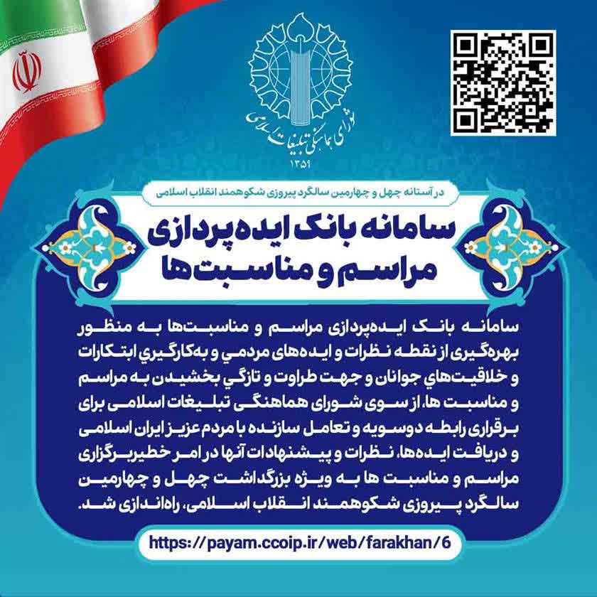 سامانه بانک ایده‌پردازی مراسم و مناسبت‌ها به منظور دریافت طرح‌ها، ایده‌ها، نظرات و پیشنهادات مردمی برای برگزاری هرچه باشکوه‌تر تمامی مراسم و مناسبت‌ها ملی، انقلابی، مذهبی و به‌ویژه دهه فجر انقلاب اسلامی راه‌اندازی شد.