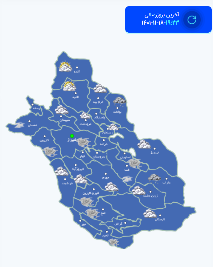 نقشه هواشناسی ظهر23 بهمن فارس