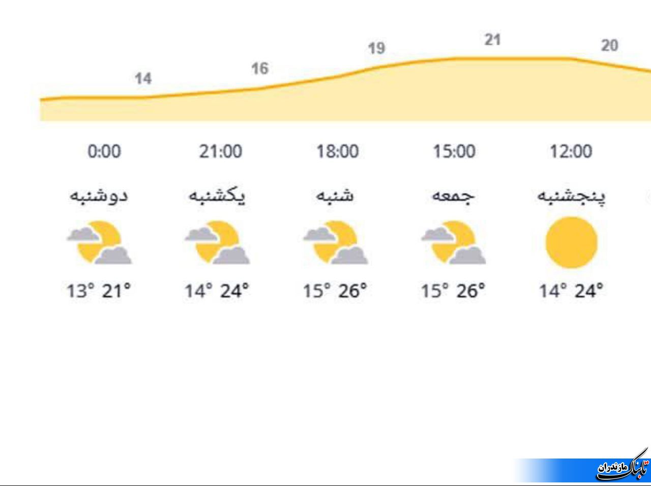 بر اساس این گزارش ، از امروز پجشنبه تا روز یکشنبه آینده با استقرار جریانات گرم جنوبی، دمای هوای مازندران نیز روند افزایشی را در پیش خواهد گرفت و طبق جدول پیش‌بینی پنج روزه هواشناسی، میانگین دمای هوا در مناطق مرکزی و شرقی از ۲۵ تا ۲۶ درجه سانتی‌گراد بالای صفر در طی امروز، با چهار تا پنج درجه افزایش در روز شنبه به ۲۹ تا ۳۱ درجه سانتی‌گراد بالای صفر می‌رسد.