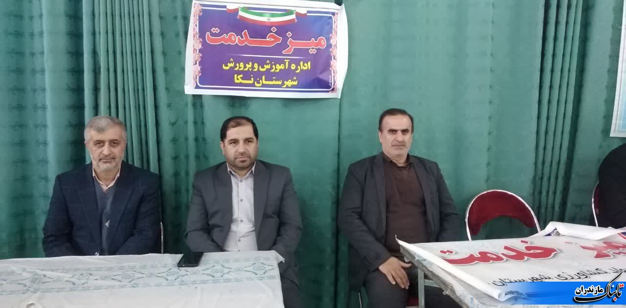 به گزارش تابناک مازندران، صبح امروز همزمان با دومین روز از دهه فجر انقلاب اسلامی میز خدمت مدیران و مسئولین شهرستان نکا با حضور مرتضی رمضانی فرماندار این شهرستان و مدیران دستگاههای اداری و اجرایی در مصلی نماز جمعه امام خمینی (ره) برپا شد.
