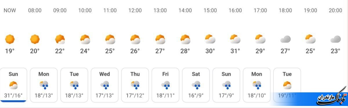 به گزارش تابناک مازندران ، اداره هواشناسی مازندران ضمن اعلام هشدار نارنجی ، متوسط دمای استان تا هفته آینده را به این شرح اعلام کرد: