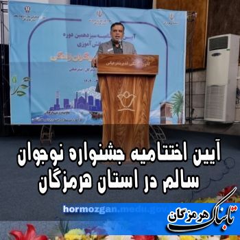 به گزارش خبرنگار تابناک هرمزگان//آیین اختتامیه سیزدهمین جشنواره جشنواره نوجوان سالم در سه بخش دانشآموزی، کارکنان و اولیاء دانشآموزان با حضور محمد قویدل مدیرکل آموزش و پرورش استان هرمزگان، سامیه جهانشاهی مدیرکل بهزیستی استان هرمزگان، مصطفی برزگر رئیس شورای مبارزه با مواد مخدر استان و جمعی از مسئولان استانی در سالن اجتماعات کانون غدیر بندرعباس برگزار شد.