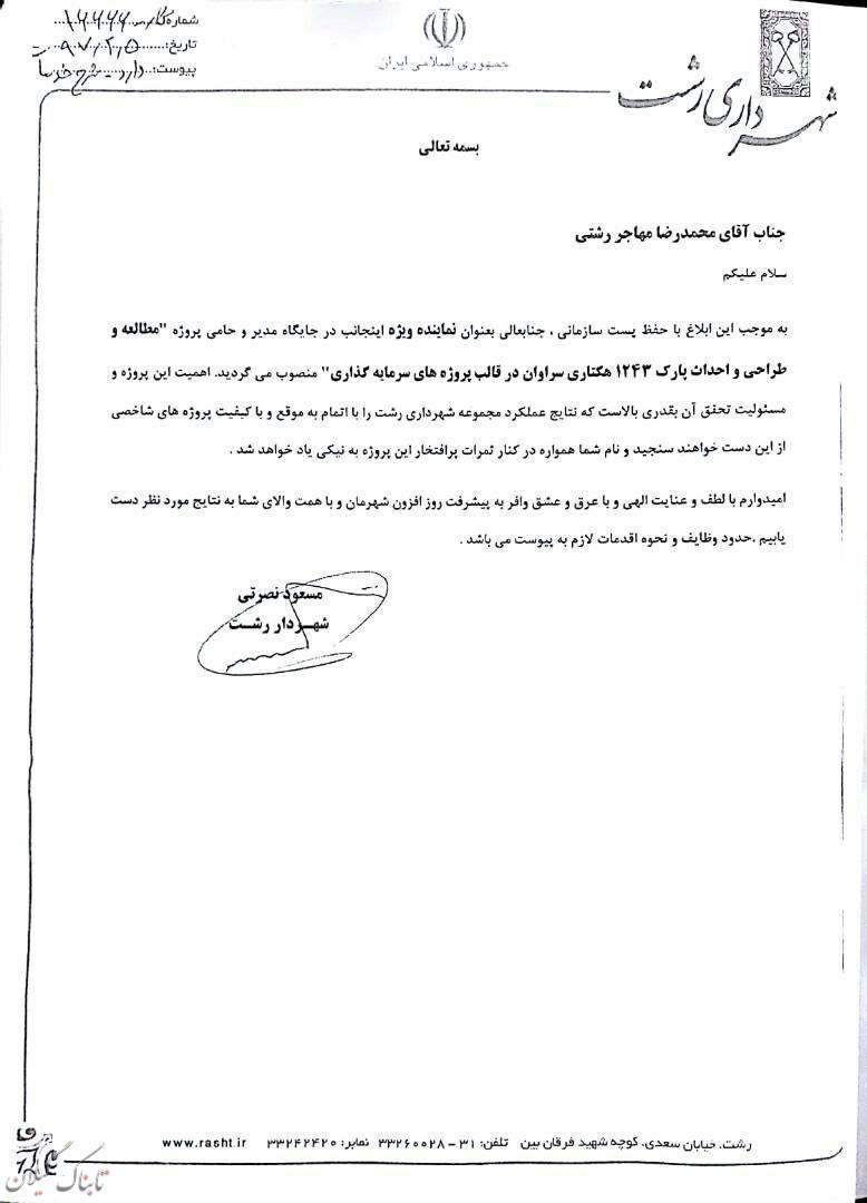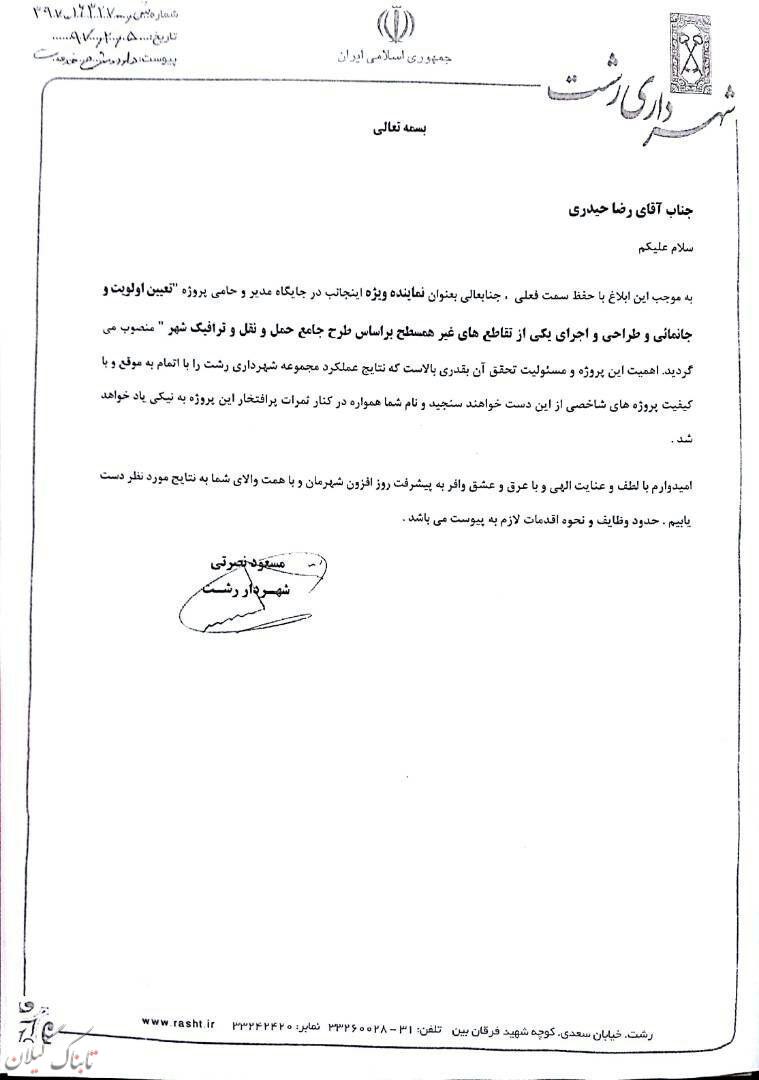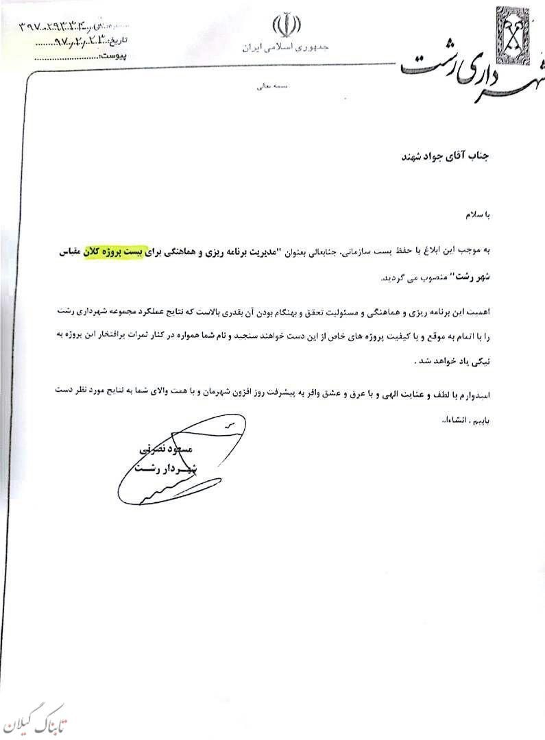 معرفی 20 پروژه مهم کلان مقیاس شهر رشت و احکام مدیران پروژه: