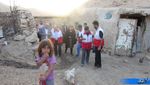 دست یاری گر سازمان داوطلبان جمعیت هلال احمر بر سر  مردمان رنج کشیده ی