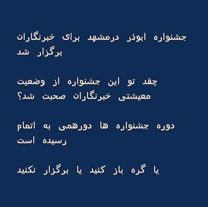 به گزارش تابناک رضوی، سید جلال مظلوم در یادداشتی پیرامون برگزاری جشنواره رسانه ای ابوذر در مشهد عنوان کرد: دوره جشنواره های دورهمی به پایان رسیده است، یا گره را باز کنید یا جشنواره برگزار نکنید.