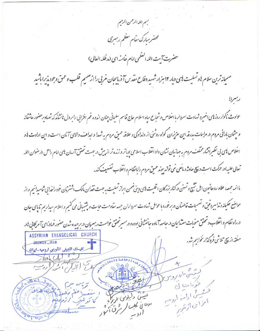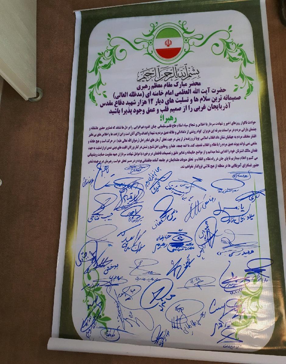 به گزارش تابناک آذربایجان غربی ،جامعه روحانیون شیعه و اهل سنت آذربایجان غربی با همراهی بزرگان اقلیت‌های دینی در استان، طی روز‌های گذشته و به مناسبت رویداد‌های هفته‌های اخیر و شهادت سردار سپهبد حاج قاسم سلیمانی که با بدرقه با شکوه ملت ایران همراه بود و همچنین در حمایت قاطع از پاسخ مقتدرانه و کوبنده سپاه پاسداران انقلاب اسلامی در شکستن هیمنه پوشالی آمریکا در جهان و همچنین برای جانفشانی در پیاده سازی منویات، تدابیر و تصمیمات فرماندهی معظم کل قوا با امضای طوماری در سراسر شهر‌های استان آمادگی خود را اعلام کردند.