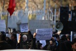 امروز چهارشنبه مصادف با شهادت حضرت زهرا(س) جمعی از مردم اصفهان مقابل استانداری تجمع کردند و نسبت به اظهارات اخیر وزیر امور خارجه واکنش نشان دادند.
