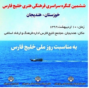 ششمین کنگره سراسری فرهنگی و هنری خلیج فارس در قالب شعر، داستان کوتاه، خوشنویسی و نقاشیخط ۱۰ اردیبهشت ۹۹ همزمان با روز ملی خلیجفارس در کنار ساحل نیلگون خلیج فارس در سالن اجتماعات اداره فرهنگ و ارشاد اسلامی هندیجان برگزار میشود.