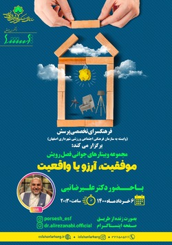 وبینار "موفقیت، آرزو یا واقعیت" به همت فرهنگسرای تخصصی پرسش وابسته به سازمان فرهنگی اجتماعی ورزشی شهرداری اصفهان در ادامه مجموعه وبینارهای "جوانی فصل رویش" برگزار میشود.
