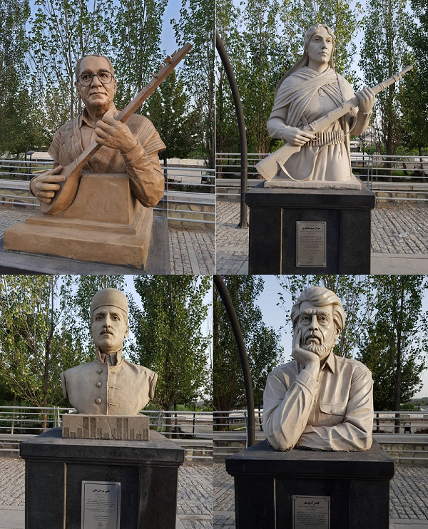 شایان ذکر است تندیس علیمردان خان و مسعود بختیاری (بهمن علاءالدین) توسط مرتضی آرین، تندیس قیصر امین پور توسط ملک دادیار گروسیان و تندیس بیبی مریم توسط قدرت الله معماریان ساخته شده است.